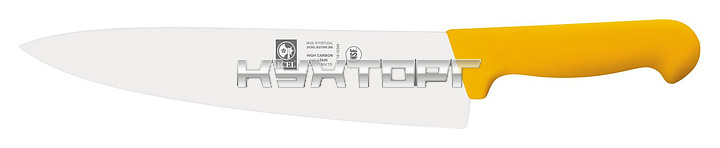 Поварской нож ICEL Practica Chef's Knife 24300.3027000.260 оснащен эргономичной ручкой желтого цвета из полипропилена, устойчивого к высоким температурам и внешнему воздействию, и заточенным вручную лезвием, выполненным из высококачественной нержавеющей стали с добавлением хрома, молибдена и ванадия. Твердость стали, закаленной по специальной технологии, составляет более 56 HRC.