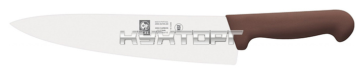 Поварской нож ICEL Practica Chef's Knife 24900.3027000.260 оснащен эргономичной ручкой коричневого цвета из полипропилена, устойчивого к высоким температурам и внешнему воздействию, и заточенным вручную лезвием, выполненным из высококачественной нержавеющей стали с добавлением хрома, молибдена и ванадия. Твердость стали, закаленной по специальной технологии, составляет более 56 HRC.