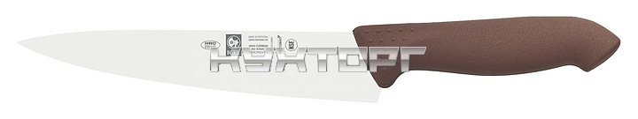 Поварской нож ICEL Horeca Prime Chef's Knife 28900.HR27000.200 оснащен эргономичной ручкой коричневого цвета из приятного на ощупь пластика Proflex, устойчивого к высоким температурам и воздействию агрессивных элементов, и заточенным вручную лезвием, выполненным из высококачественной нержавеющей стали X50CrMoV15 с добавлением хрома, молибдена и ванадия. Твердость стали, закаленной по специальной технологии, составляет более 56 HRC. Ручка, изготовленная по системе инжекции, имеет специальную антибактериальную защиту Microban.