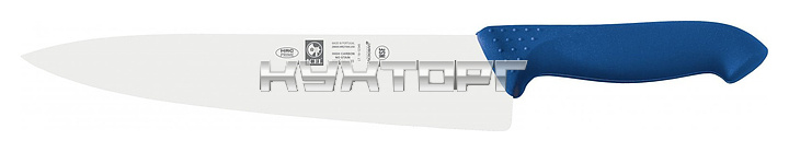 Поварской нож ICEL Horeca Prime Chef's Knife 28600.HR27000.200 оснащен эргономичной ручкой синего цвета из приятного на ощупь пластика Proflex, устойчивого к высоким температурам и воздействию агрессивных элементов, и заточенным вручную лезвием, выполненным из высококачественной нержавеющей стали X50CrMoV15 с добавлением хрома, молибдена и ванадия. Твердость стали, закаленной по специальной технологии, составляет более 56 HRC. Ручка, изготовленная по системе инжекции, имеет специальную антибактериальную защиту Microban.