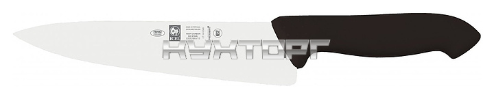 Поварской нож ICEL Horeca Prime Chef's knife 28100.HR27000.200 оснащен эргономичной ручкой черного цвета из приятного на ощупь пластика Proflex, устойчивого к высоким температурам и воздействию агрессивных элементов, и заточенным вручную лезвием, выполненным из высококачественной нержавеющей стали X50CrMoV15 с добавлением хрома, молибдена и ванадия. Твердость стали, закаленной по специальной технологии, составляет более 56 HRC. Ручка, изготовленная по системе инжекции, имеет специальную антибактериальную защиту Microban.
