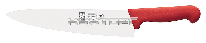 Поварской нож ICEL Practica Chef's Knife 24400.3028000.300 оснащен эргономичной ручкой красного цвета из полипропилена, устойчивого к высоким температурам и внешнему воздействию, и заточенным вручную лезвием, выполненным из высококачественной нержавеющей стали с добавлением хрома, молибдена и ванадия. Твердость стали, закаленной по специальной технологии, составляет более 56 HRC.