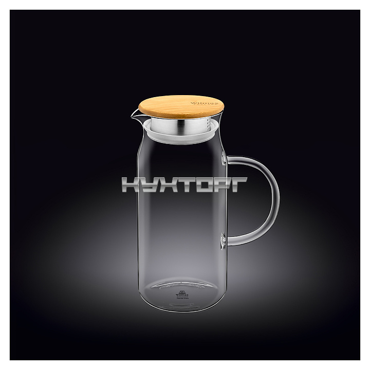 Кувшин Wilmax WL‑888207/A выполнен из экологически чистого ультра-прозрачного термостойкого боросиликатного стекла и оснащен бамбуковой крышкой с сетчатым фильтром из нержавеющей стали. Модель подходит для использования в посудомоечной машине, на электрической и газовой плите с рассекателем и на слабом пламени.