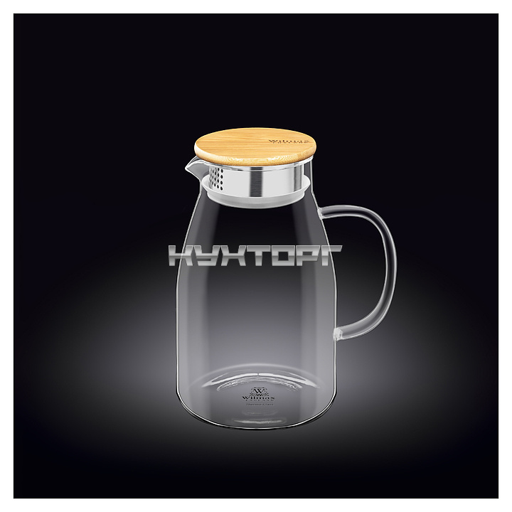 Кувшин Wilmax WL‑888215/A выполнен из экологически чистого ультра-прозрачного термостойкого боросиликатного стекла и оснащен бамбуковой крышкой с сетчатым фильтром из нержавеющей стали. Модель подходит для использования в посудомоечной машине, на электрической и газовой плите с рассекателем и на слабом пламени.