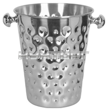 Ведро Dongnai FQ-CB-004 предназначено для сервировки шампанских вин в охлажденном состоянии на предприятиях общественного питания. Модель оснащена круглым дном, расширенными кверху стенками со слегка выступающей кромкой и 2 фиксированными рукоятками грибовидной формы. Изделие выполнено из нержавеющей стали с поверхностью серебристого цвета и декоративным рельефом на стенках.