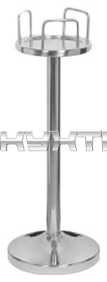 Подставка Dongnai FQ-CBR-701S используется для размещения ведра для шампанских вин в процессе сервировки стола на предприятиях общественного питания. Модель оснащена вертикальной цилиндрической стойкой с круглыми опорой и основанием с 3 П-образными бортиками. Изделие выполнено из нержавеющей стали с серебристой поверхностью с зеркальной полировкой.