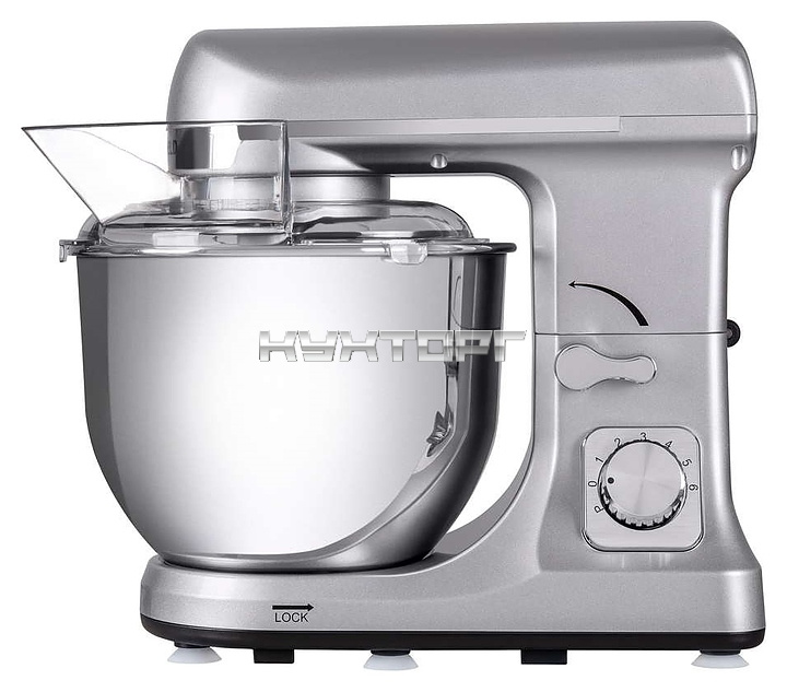 - Съемная прозрачная крышка для защиты от разбрызгивания смеси с горловиной для добавления ингридиентов в процессе работы