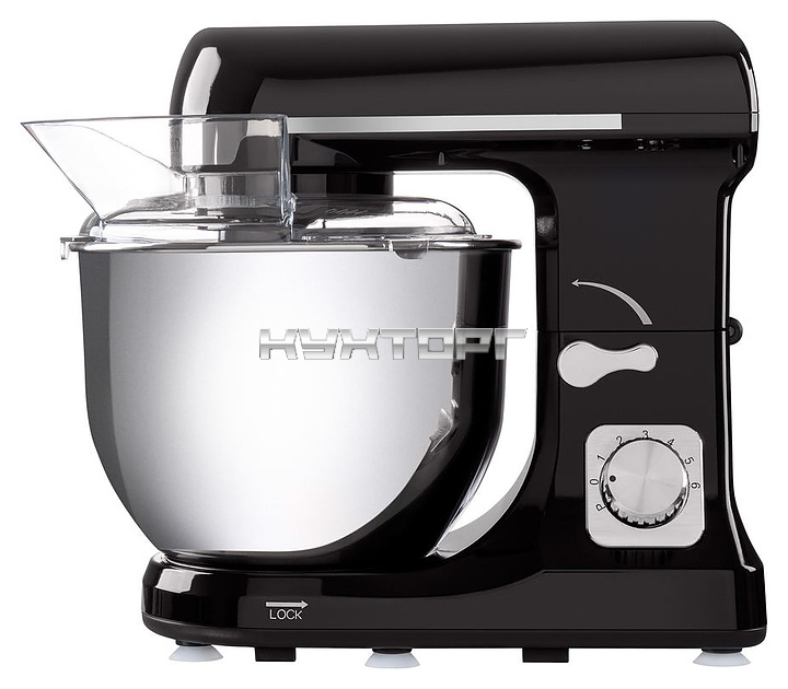- Съемная прозрачная крышка для защиты от разбрызгивания смеси с горловиной для добавления ингридиентов в процессе работы