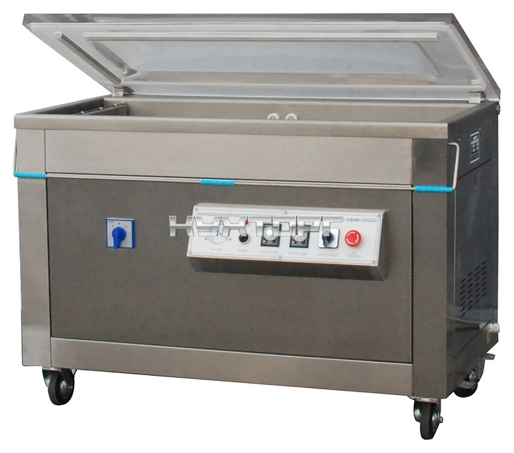 Напольный вакуумный упаковщик Hualian DZ-1040 используется на предприятиях пищевой промышленности, общественного питания и торговли для упаковки готовых блюд и различных пищевых продуктов в герметичную тару для сохранения свежести, предотвращения размножения микроорганизмов и смешивания запахов. Модель оснащена камерой с 2 сварочными пластинами, расположенной сверху откидной крышкой выпуклой формы и электромеханической панелью управления. Корпус и камера выполнены из нержавеющей стали, крышка – из высокопрочного органического стекла.