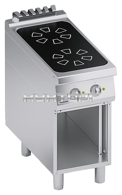 Напольная индукционная плита VEROTERM VT4CIEP05VV используется на предприятиях общественного питания и торговли для приготовления широкого ассортимента блюд в наплитной посуде. Принцип работы основан на непосредственном нагреве металлической посуды создаваемыми высокочастотным магнитным полем индуцированными вихревыми токами. Модель оснащена 2 варочными зонами, фронтальной электромеханической панелью управления и дисплеями индикации на рабочей поверхности. Корпус выполнен из нержавеющей стали AISI 430, рабочая поверхность – из высококачественной стеклокерамики черного цвета (Швейцария).