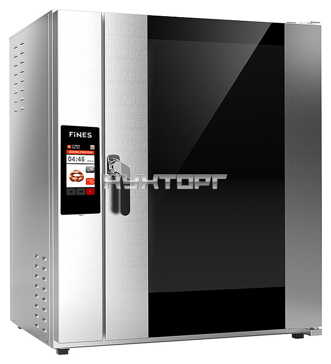 Конвекционная печь Fines FB10-S Smart серии FIN-BAKE предназначена для приготовления широкого спектра блюд, выпекания хлебобулочных и кондитерских изделий, разогрева готовых блюд на предприятиях пищевой промышленности, общественного питания и торговли. Модель оснащена правосторонней распашной дверью с поворотной рукояткой, сенсорным цветным жидкокристаллическим TFT дисплеем управления и индикации. Корпус и облицовка камеры выполнены из стойкой к коррозии нержавеющей стали марок 304 и 430, остекление – из закаленного стекла с антибликовой наружной поверхностью, изоляция – из толстого слоя керамики и каменной ваты, уплотнительная дверная манжета – из термостойкого силикона.