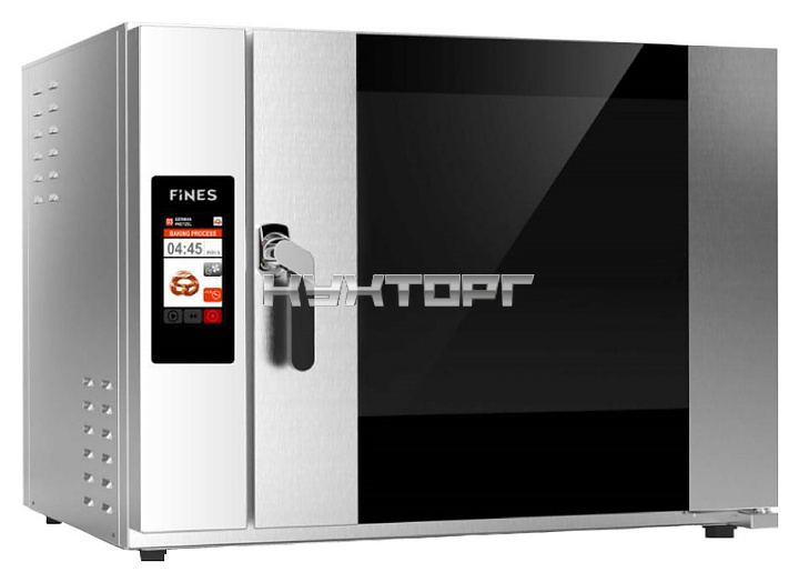 Конвекционная печь Fines FB5-S Smart серии FIN-BAKE предназначена для приготовления широкого спектра блюд, выпекания хлебобулочных и кондитерских изделий, разогрева готовых блюд на предприятиях пищевой промышленности, общественного питания и торговли. Модель оснащена правосторонней распашной дверью с поворотной рукояткой, сенсорным цветным жидкокристаллическим TFT дисплеем управления и индикации. Корпус и облицовка камеры выполнены из стойкой к коррозии нержавеющей стали марок 304 и 430, остекление – из закаленного стекла с антибликовой наружной поверхностью, изоляция – из толстого слоя керамики и каменной ваты, уплотнительная дверная манжета – из термостойкого силикона.