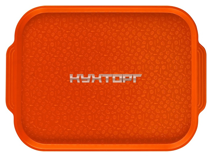 Столовый поднос Клен 560T используется в столовых, кафе, ресторанах и на других предприятиях общественного питания для транспортировки посуды и подачи блюд на стол. Модель прямоугольной формы оснащена нескользящей текстурной рабочей поверхностью, слегка расширенными кверху бортами с выступающей кромкой и 2 рукоятками. Изделие выполнено из высококачественного полистирола оранжевого цвета.
