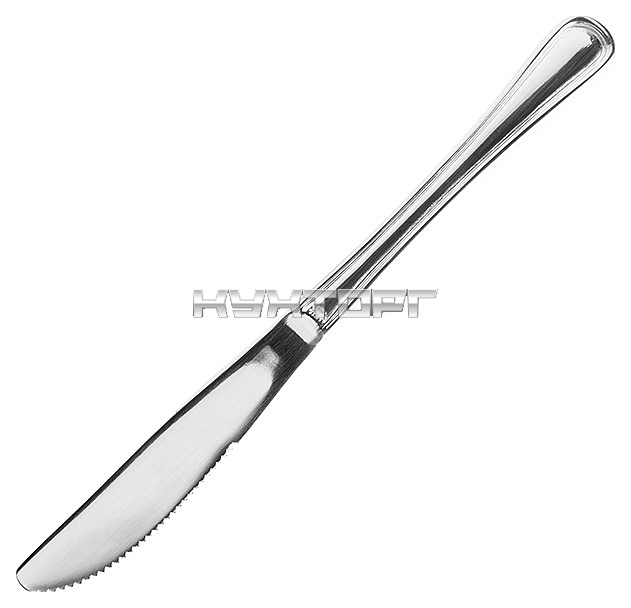 Нож Pintinox Eco Cambridge 49154596 используется в качестве столового прибора на предприятиях общественного питания и в домашних условиях. Модель оснащена головкой с зазубренным лезвием, расширенной кверху рукояткой с округлым наконечником и декоративным рельефом. Изделие выполнено из высококачественной пищевой нержавеющей углеродистой стали 18/10 (содержание хрома – 18%, никеля – 10%) с глянцевой серебристой поверхностью.
