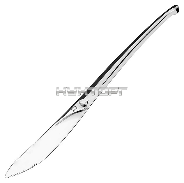 Нож Pintinox Snake 114000L3 используется в качестве столового прибора на предприятиях общественного питания и в домашних условиях. Модель оснащена узкой головкой с зазубренным лезвием и изогнутой рукояткой, стилизованной под змеиный хвост. Изделие выполнено из высококачественной пищевой нержавеющей углеродистой стали 18/10 (содержание хрома – 18%, никеля – 10%) с глянцевой серебристой поверхностью.