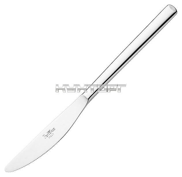 Нож Pintinox Synthesis 20300003 используется в качестве столового прибора на предприятиях общественного питания и в домашних условиях. Модель оснащена головкой с зазубренным лезвием и прямой рукояткой с декоративными скосами на наконечнике. Изделие выполнено из высококачественной пищевой нержавеющей углеродистой стали 18/10 (содержание хрома – 18%, никеля – 10%) с серебристой поверхностью.