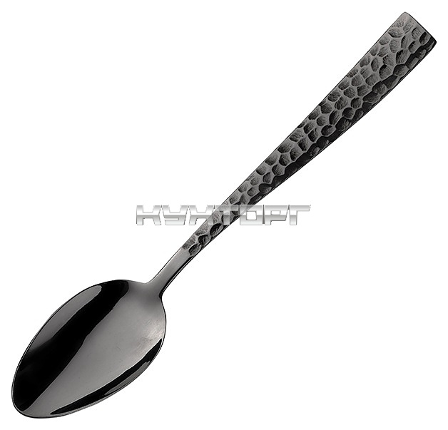 Ложка Pintinox Palace Martellato 1TD00001 используется в качестве столового прибора на предприятиях общественного питания и в домашних условиях. Модель оснащена головкой классической формы с глянцевой поверхностью, рукояткой с декоративной рельефной шероховатой поверхностью и прямым наконечником. Изделие выполнено из высококачественной пищевой нержавеющей углеродистой стали 18/10 (содержание хрома – 18%, никеля – 10%) с покрытием черного оттенка Treasure Black.