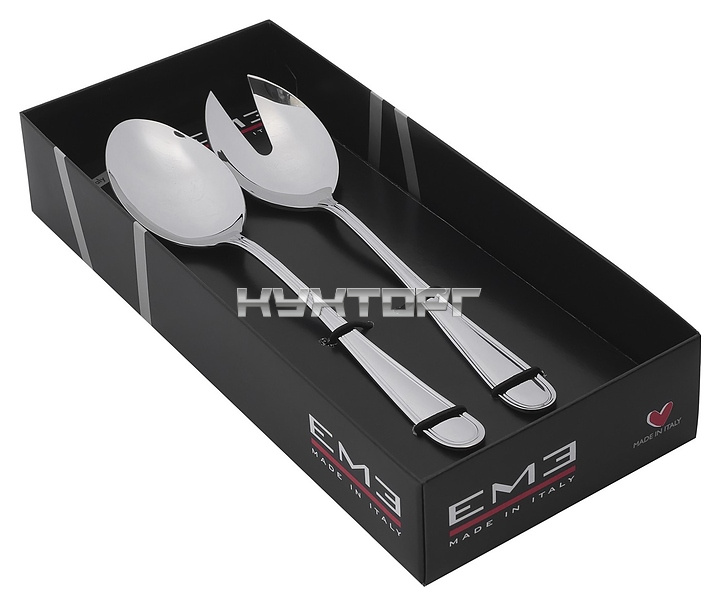 Набор для салата EME City C03CT/10 используется на предприятиях общественного питания и в домашних условиях для сервировки стола. Приборы имеют ручки округлой формы с гравировкой. Изделия выполнены из полированной нержавеющей стали 18/10.