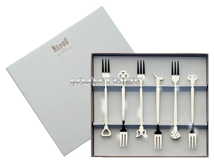 Набор десертных вилок Mepra Evento 100344631 используется на предприятиях общественного питания и в домашних условиях для сервировки. Каждая вилка отличается идеально обработанной поверхностью между зубцами и имеет специальную выемку у основания зубьев для легкого вымывания остатков пищи. Изделия выполнены из высококачественной и устойчивой к коррозии нержавеющей стали 18/10.