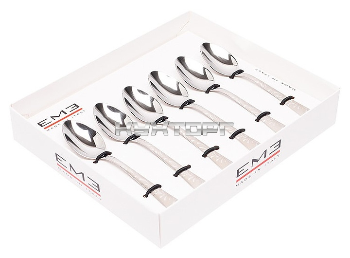 Набор кофейных ложек EME Segno Mediterraneo C09SE/LME используется в процессе трапезы на предприятиях общественного питания и в домашних условиях. Оригинальный цветочный декор наносится с помощью лазерной гравировки. Приборы изготовлены из нержавеющей стали 18/10 с глянцевой поверхностью.