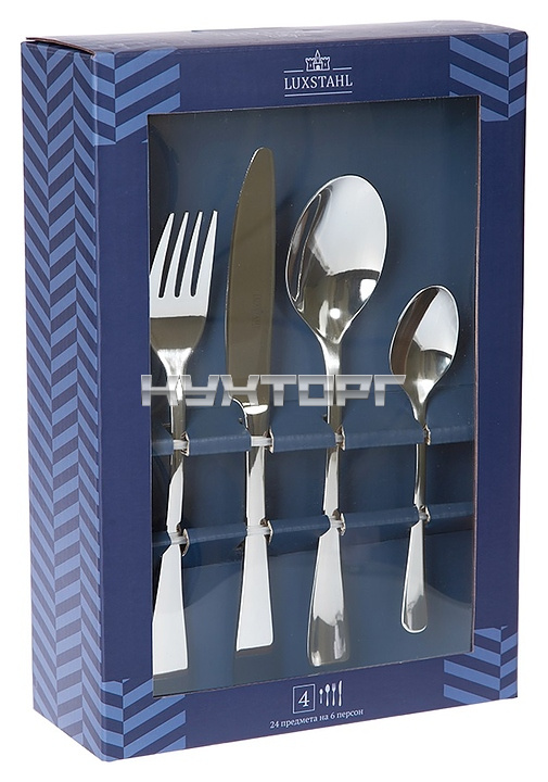 Набор столовых приборов Luxstahl Toscana 24 шт. используется в процессе трапезы на предприятиях общественного питания и в домашних условиях. Набор состоит из 24 предметов. Приборы оснащены расширенными кверху рукоятками с округлыми наконечниками, головки ложек овальной формы. Изделия выполнены из высококачественной нержавеющей стали с зеркальной полировкой, упаковка – фирменная картонная коробка.