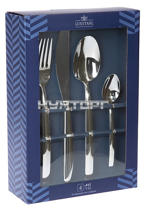 Набор столовых приборов Luxstahl Rimini 24 шт. используется в процессе трапезы на предприятиях общественного питания и в домашних условиях. Набор состоит из 24 предметов. Изделия выполнены из нержавеющей стали с зеркальной полировкой, упаковка – фирменная картонная коробка.