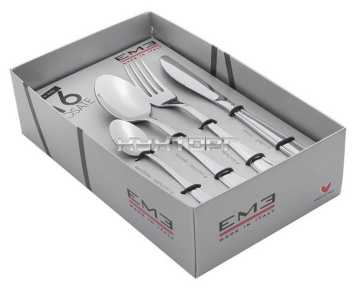 В комплект поставки входят 4 столовых ложки, 4 вилки, 4 столовых ножа и 4 чайных ложки.