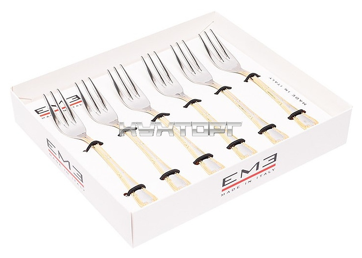 Набор десертных вилок EME Luigi XVI Gold Decor C12XVI/OR используется в процессе трапезы на предприятиях общественного питания и в домашних условиях. Вилки с 3 зубцами идеально подходят для десертов, пирожных, тортов, пирогов, а также могут использоваться как вилки для закусок. Закругленные ручки с золотой окантовкой и элегантный декор в духе французского неоклассицизма прекрасно подойдут для праздничной сервировки стола. Приборы изготовлены из нержавеющей стали 18/10 с зеркальной поверхностью. Золотое покрытие на гравировке наносится вручную.