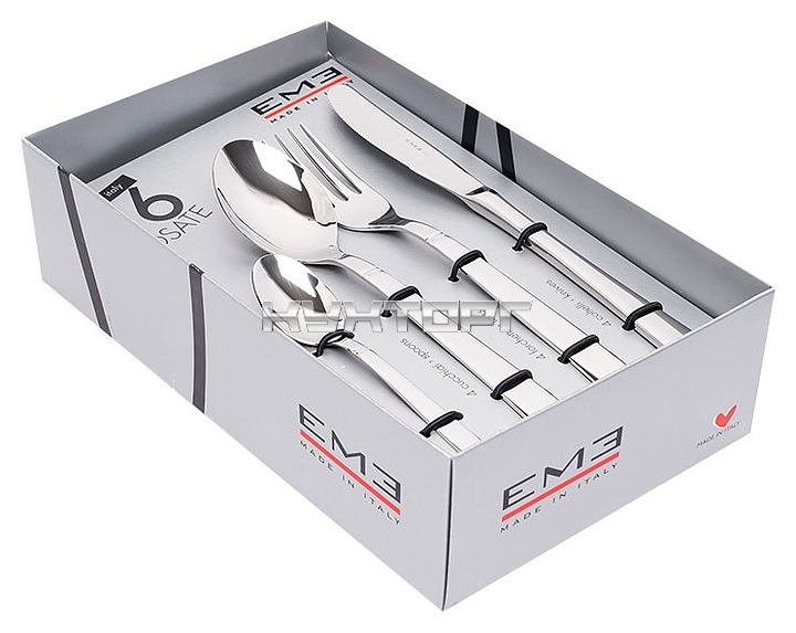 В комплект поставки входят 4 столовых ложки, 4 вилки, 4 столовых ножа и 4 чайных ложки.