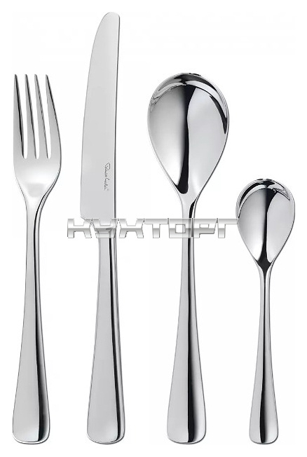 Набор столовых приборов ROBERT WELCH MALBR1099V/24 серии Malvern Bright используется в процессе трапезы на предприятиях общественного питания и в домашних условиях. Набор состоит из 24 предметов. Приборы оснащены расширенными кверху рукоятками с округлыми наконечниками, головки ложек каплевидной формы. Изделия выполнены из высококачественной пищевой нержавеющей углеродистой стали 18/10 (содержание хрома – 18%, никеля – 10%) с глянцевой полировкой, упаковка – фирменная картонная коробка.