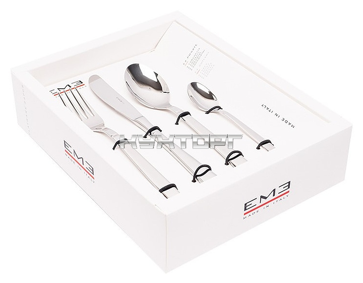 В комплект поставки входят 6 столовых ложек, 6 вилок, 6 столовых ножей и 6 чайных ложек.