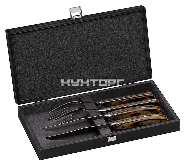 Набор столовых приборов для стейка WMF Rodeo 54.3205.6070 используется на предприятиях общественного питания и торговли, в частных домах и квартирах для сервировки стола. Модель можно мыть в посудомоечной машине. Рабочая часть выполнена из нержавеющей стали, которая отличается прочностью и долговечностью, не впитывает запахи и грязь.