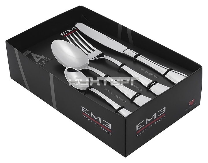 В комплект поставки входят 6 столовых ложек, 6 вилок, 6 столовых ножей и 6 чайных ложек..