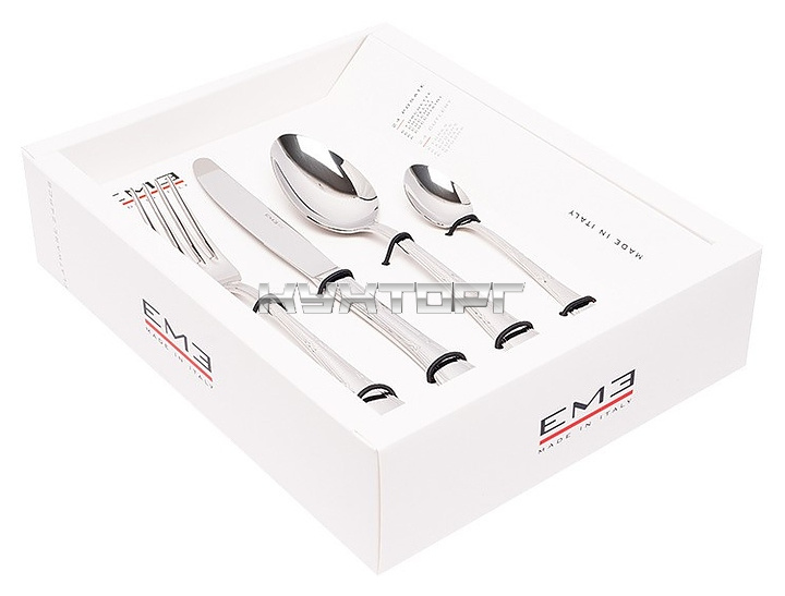 В комплект поставки входят 6 столовых ложек, 6 вилок, 6 столовых ножей и 6 чайных ложек.