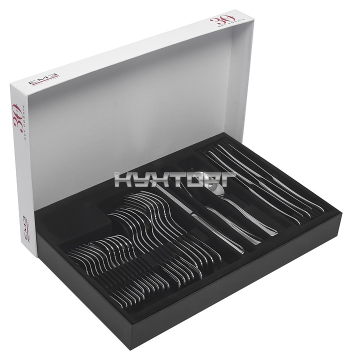 В комплект поставки входят 6 столовых ложек, 6 вилок, 6 столовых ножей, 6 чайных ложек и 6 десертных вилок.