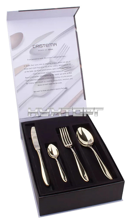 Набор столовых приборов CRISTEMA PEP-12000-24LWG серии Colombo используется на предприятиях общественного питания и торговли, а также в частных домах и квартирах для сервировки. Изделия выполнены из нержавеющей стали 18/10 с керамическим PVD покрытием и зеркальной полировкой.