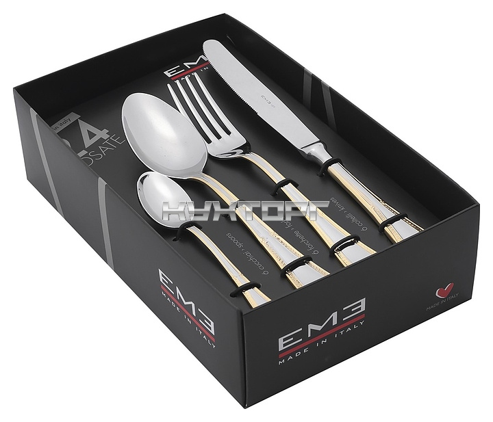 В комплект поставки входят 6 столовых ложек, 6 вилок, 6 столовых ножей и 6 чайных ложек.
