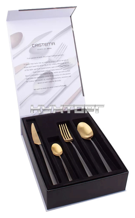 Набор столовых приборов CRISTEMA PEP-16000-24LECBLD серии Tokyo используется на предприятиях общественного питания и торговли, а также в частных домах и квартирах для сервировки. Изделия выполнены из нержавеющей стали с керамическим PVD покрытием и матовой полировкой.