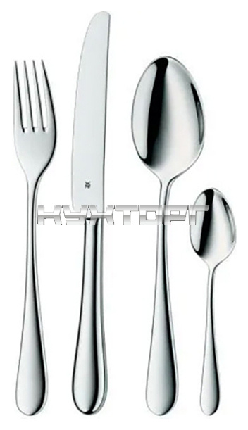 Набор столовых приборов WMF Signum 12.1900.0024 используется на предприятиях общественного питания и торговли, а также в частных домах и квартирах. Изделия подходят для мытья в посудомоечной машине. Приборы изготовлены из полированной нержавеющей стали, которая отличается прочностью, долговечностью, не имеет запаха, вкуса и не подвержена воздействию пищевых кислот, а также устойчива к царапинам и ударам.