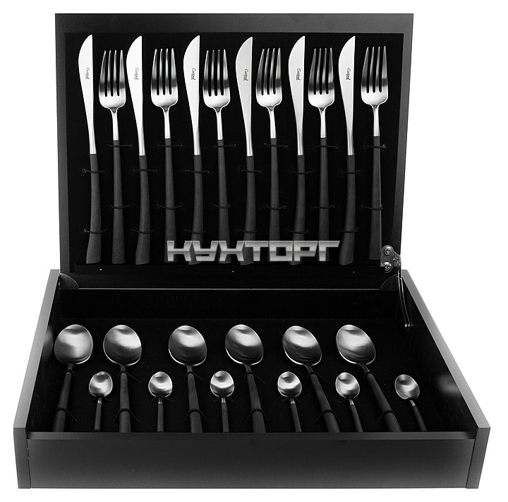 В комплект поставки входят 6 столовых ножей, 6 столовых вилок, 6 столовых и 6 чайных ложек.