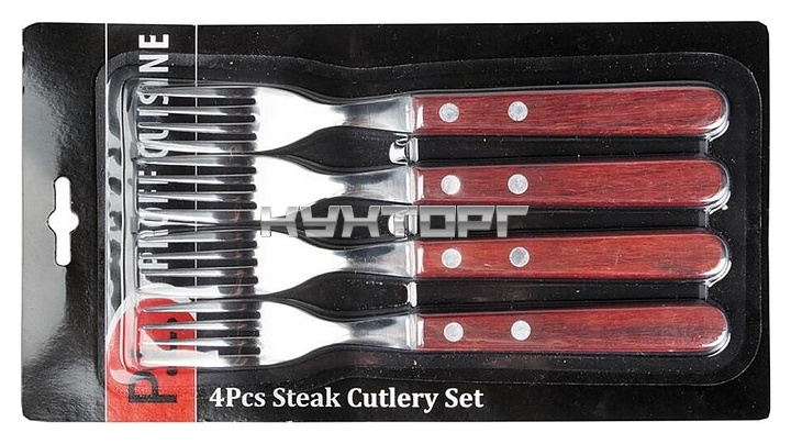Набор вилок для стейка P.L. Proff Cuisine 81260006 используется на предприятиях общественного питания и торговли, в частных домах и квартирах для сервировки стола. Рабочая часть вилок выполнена из нержавеющей стали, ручки - из дерева.