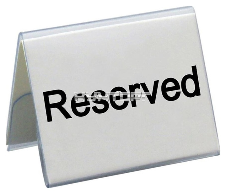Табличка P.L. Proff Cuisine TPPR-01 "Reserved" предназначена для размещения на столиках и оповещения посетителей о брони на предприятиях общественного питания и торговли. Модель оснащена кармашками для установки фоновой основы под надпись. Изделие выполнено из прозрачного пластика с черным принтом.