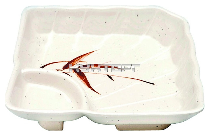 Блюдо P.L. Proff Cuisine JF09 (096) "Веер" предназначено для подачи блюд японской кухни на предприятиях общественного питания, а также в домашних условиях. Модель прямоугольной формы оснащена отделением для соуса и устойчивыми опорами. Изделие выполнено из белого пластика с декоративным рельефом и рисунком на внутренней поверхности.