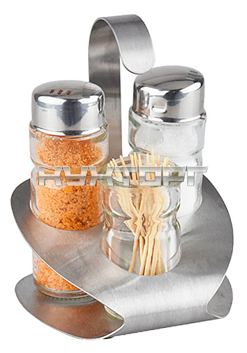 Набор для специй VIATTO S1854 предназначен для сервировки стола на предприятиях общественного питания и торговли, в частных домах и квартирах. Модель выполнена из нержавеющей стали и стекла.
