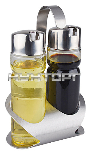 В набор входят бутылочка для масла, бутылочка для уксуса и подставка.