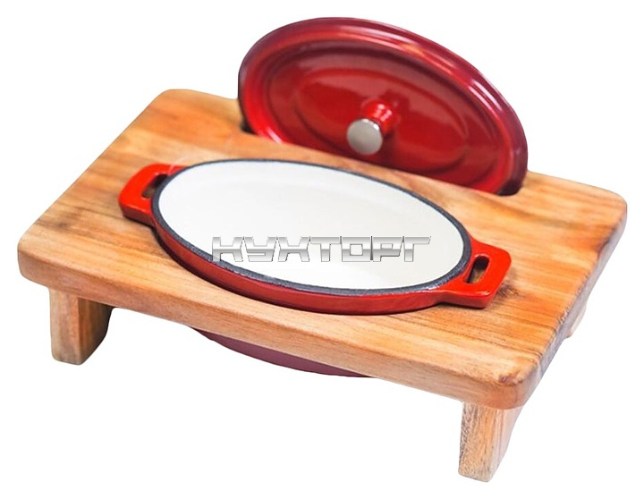 Подставка P.L. Proff Cuisine 28х19 см используется совместно с овальной чугунной кастрюлей и аналогичной посудой для подачи горячих блюд на предприятиях общественного питания. Модель оснащена прямоугольной столешницей с отверстиями для емкости и крышки. Изделие выполнено из буковой древесины.
