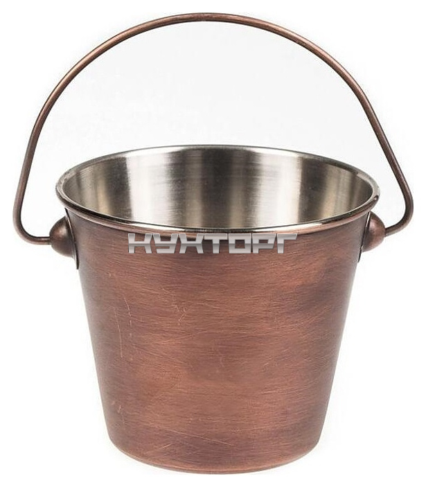 Ведро P.L. Proff Cuisine 73038030 / SG-95347 (C) предназначено для подачи различных закусок на предприятиях общественного питания. Модель круглого сечения оснащена расширенным кверху бортом с выступающей кромкой и складной дугообразной рукояткой с выпуклыми накладками в местах крепления. Изделие выполнено из нержавеющей стали с покрытием внешней поверхности антик под состаренную медь.