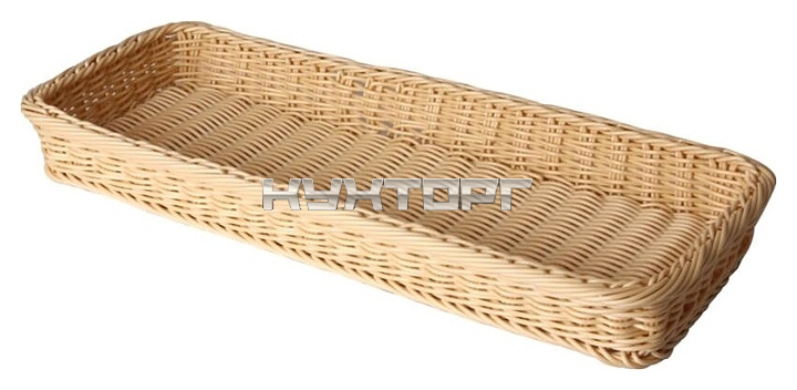 Корзина Sunnex C04023 предназначена для выкладки хлеба, выпечки, фруктов на предприятиях общественного питания и торговли. Изделие прямоугольной формы выполнено из переплетенных полипропиленовых волокон бежевого цвета.
