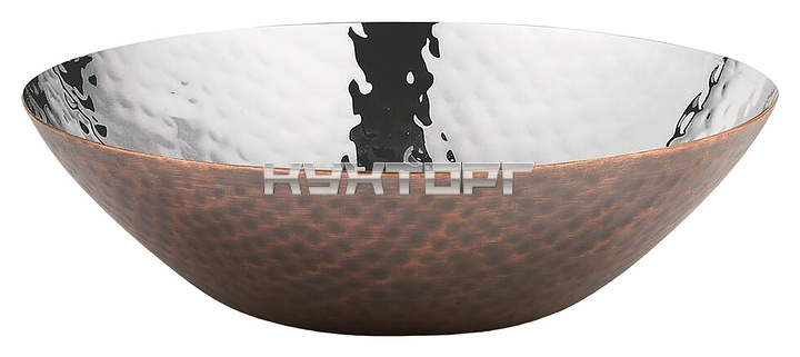 Салатник P.L. Proff Cuisine Antique 81290249 используется на предприятиях общественного питания и торговли, в частных домах и квартирах для сервировки мясных, рыбных и овощных блюд. Модель имеет расширяющуюся к верху форму. Изделие выполнено из нержавеющей стали с медным покрытием.