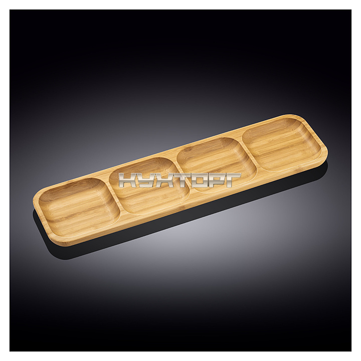Менажница Wilmax WL-771225/A предназначена для сервировки и подачи различных блюд в барах, ресторанах и кафе. Модель имеет прямоугольную форму и разделена на 4 секции. Изделие выполнено из прочного и экологически чистого материала - натурального бамбука.